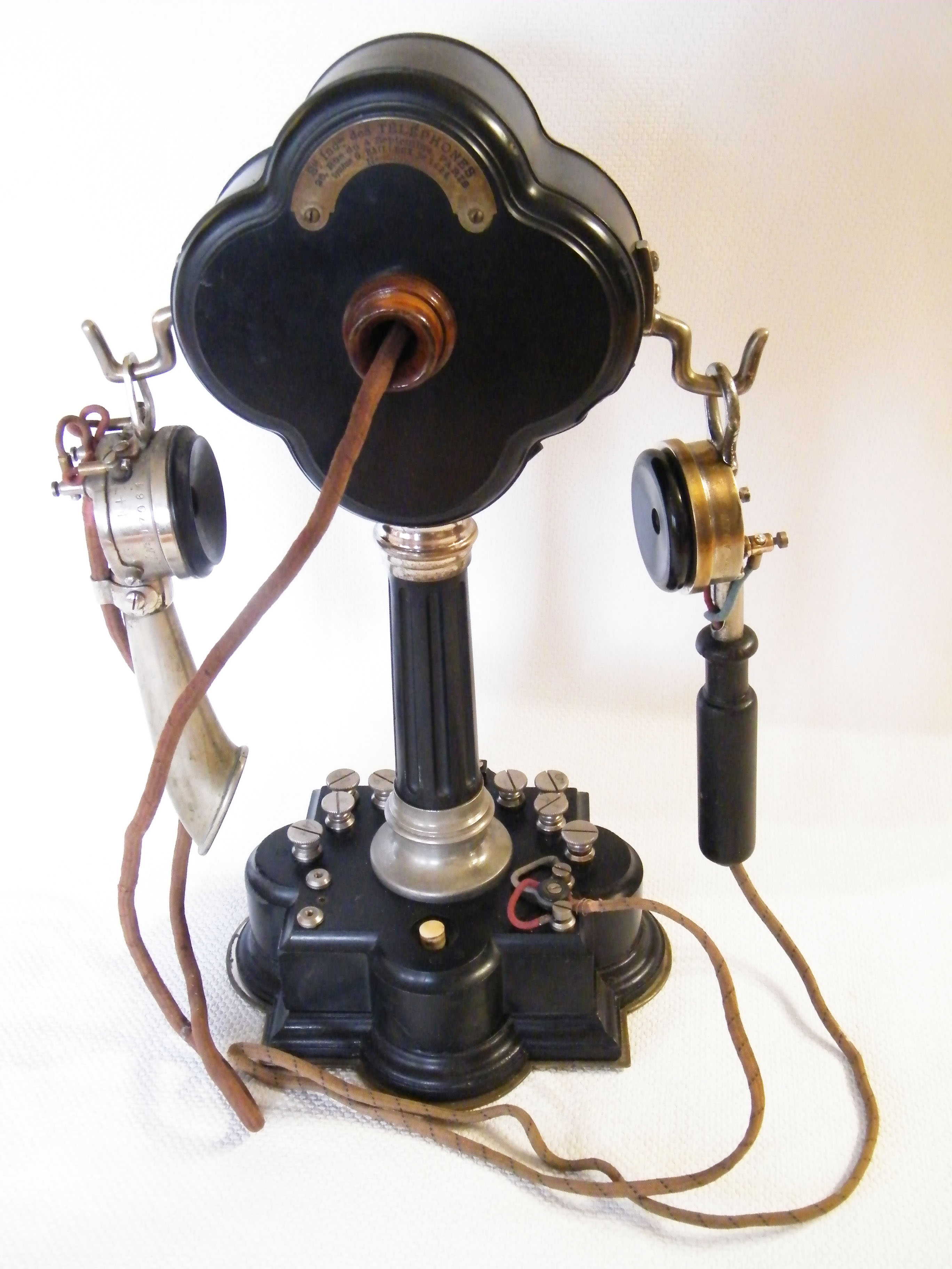 Superbe BERLINER mobile poinçonné de avril 1918 L'ébénisterie est en excellent état. Les parties nickelées également. Le cordon du combiné a été refait. L'intérieur est complet. Prix: 320 Euros |