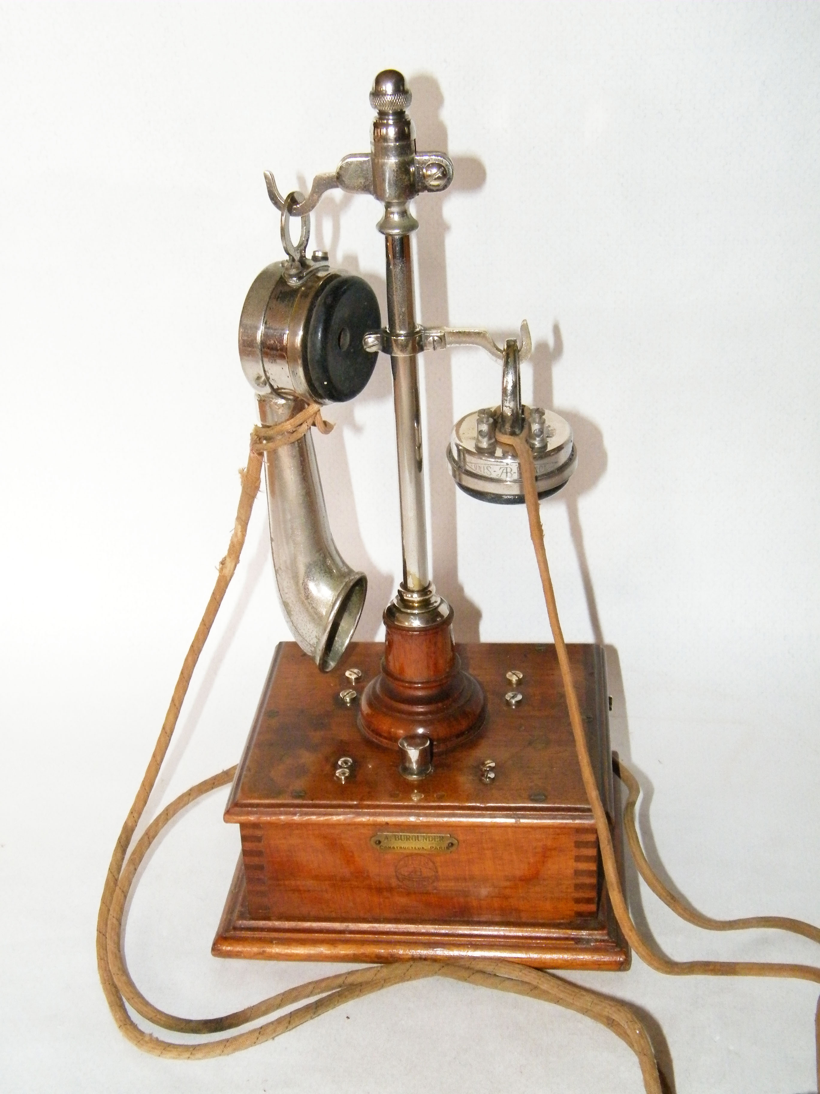 poinçonné de 02 20 belle ébénisterie en noyer. avec une ou deux traces nickelage du cornet & du recepteur impeccable. Prix: 200 Euros |